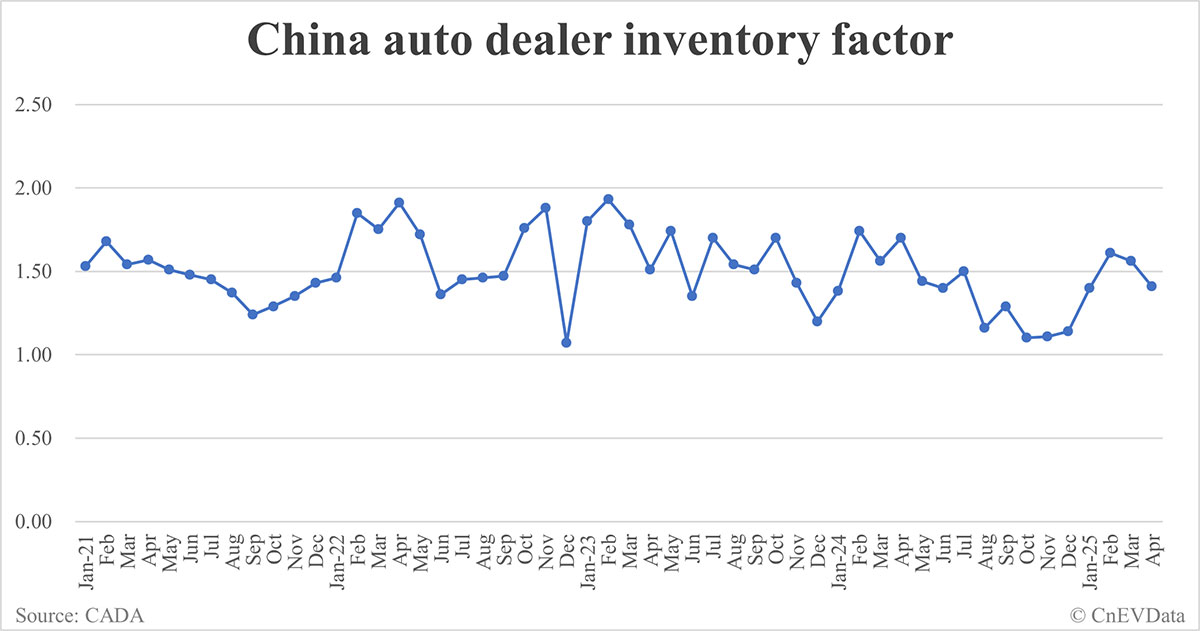 China auto dealer inventory factor falls to 1.41 in Apr