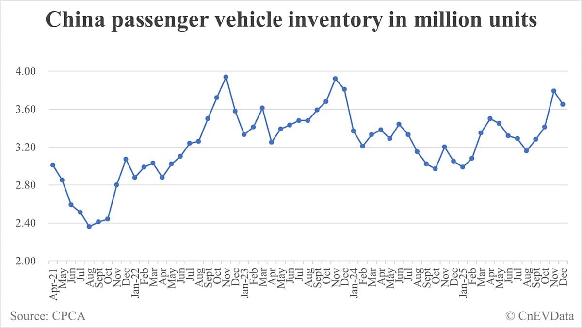 China passenger car inventory at end of Dec: 3.65 million