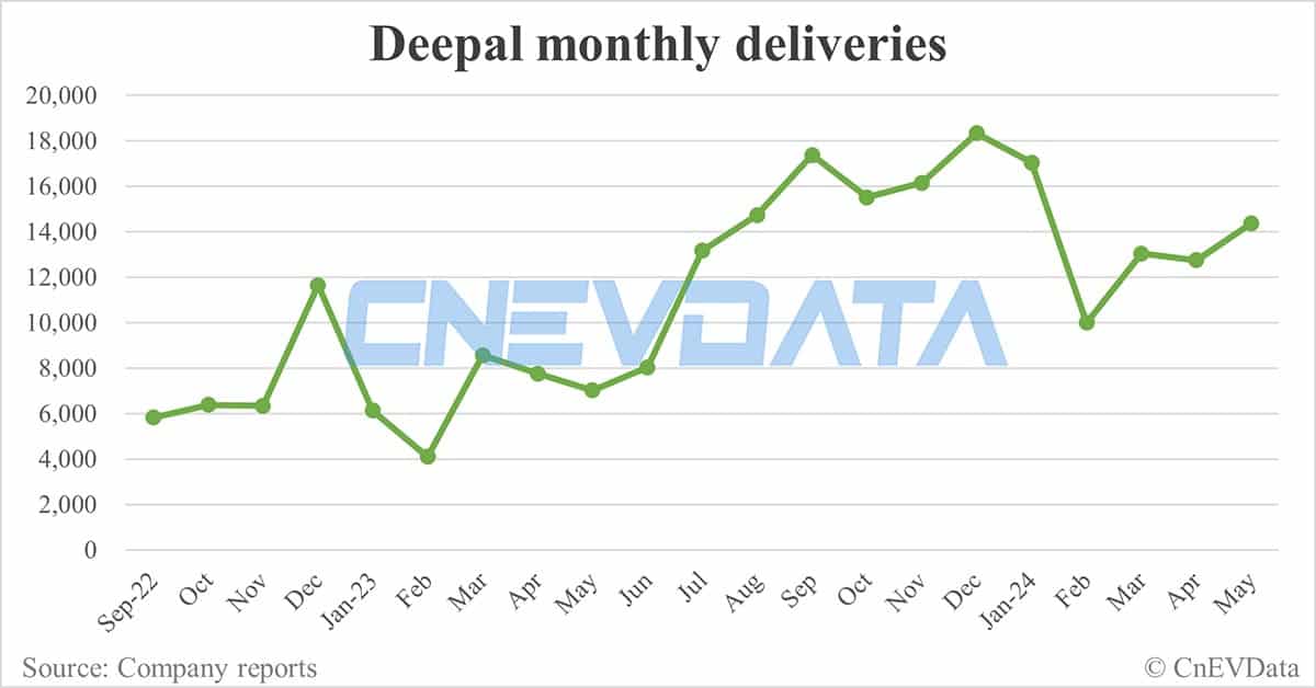 Deepal delivered 14,371 vehicles in May, up 104.69 percent year-on-year and up 12.77 percent from April.