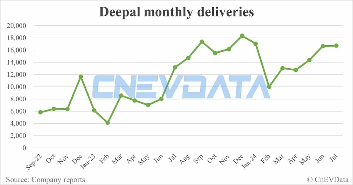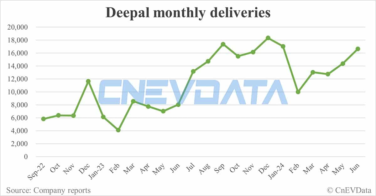 Deepal delivered 16,659 vehicles in June, up 107.18 percent year-on-year and up 15.92 percent from May.