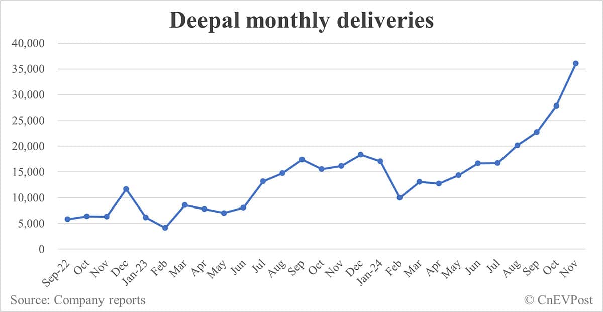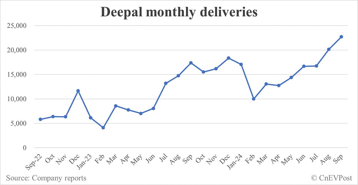 So far this year, Deepal has delivered 171,281 vehicles, up 67.24 percent year-on-year.