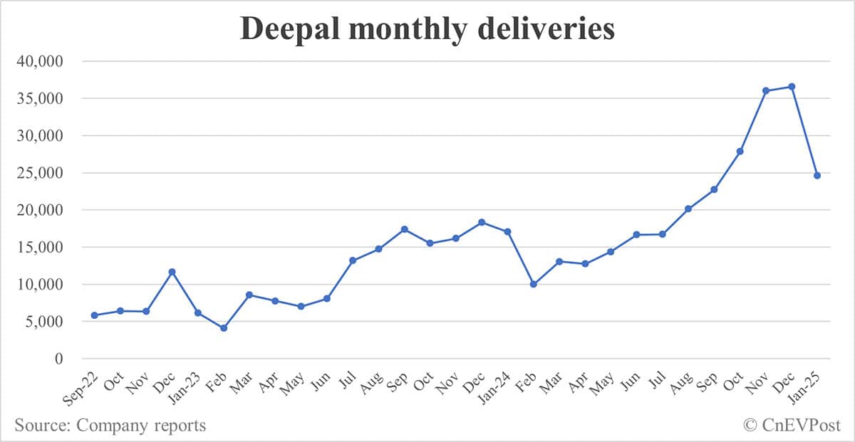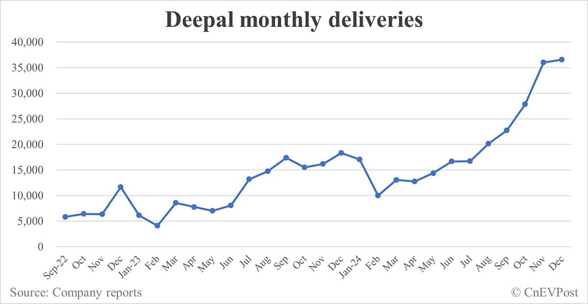 For the full year 2024, Deepal delivered 243,884 vehicles, up 78.13 percent year-on-year.