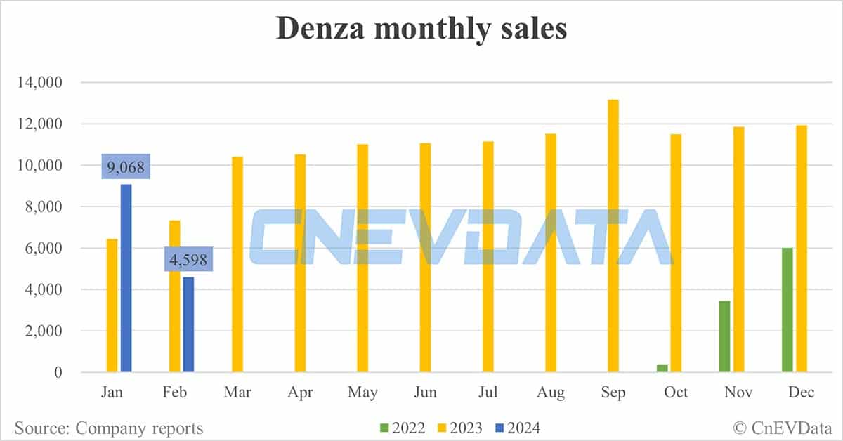 Denza sales in Feb: 4,598