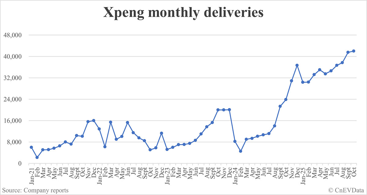 Xpeng deliveries in Oct: 42,013