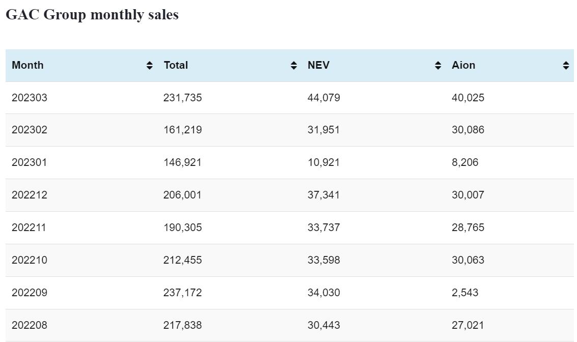 GAC's all vehicle sales in October were 224,449 units, with NEVs contributing 20.84 percent.