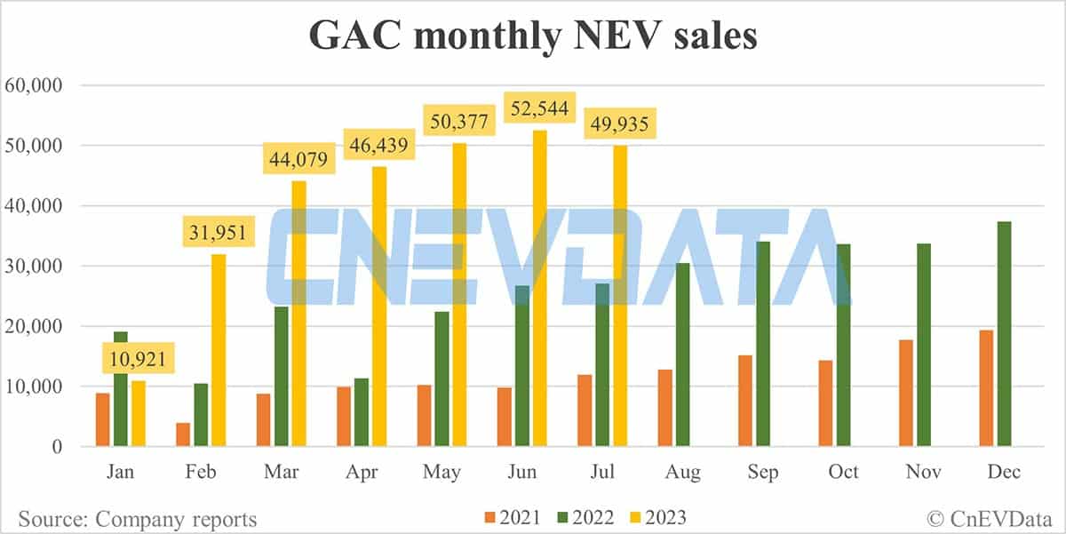 GAC sold 189,199 units of all vehicles in July, with NEVs contributing 26.39 percent.