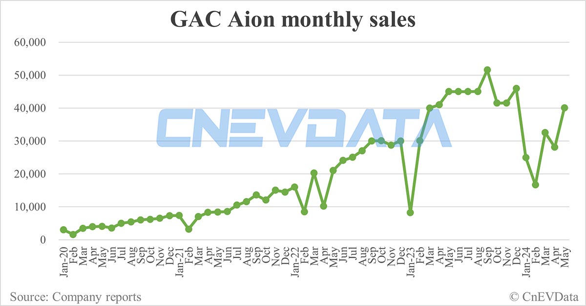 GAC Aion sales in May were down 10.95 percent year-on-year, but up 42.54 percent from April.