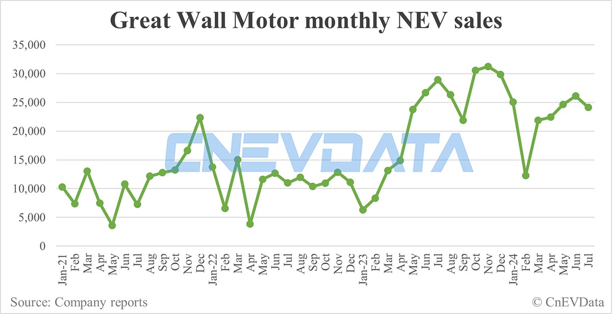 Great Wall Motor NEV sales in Jul: 24,145