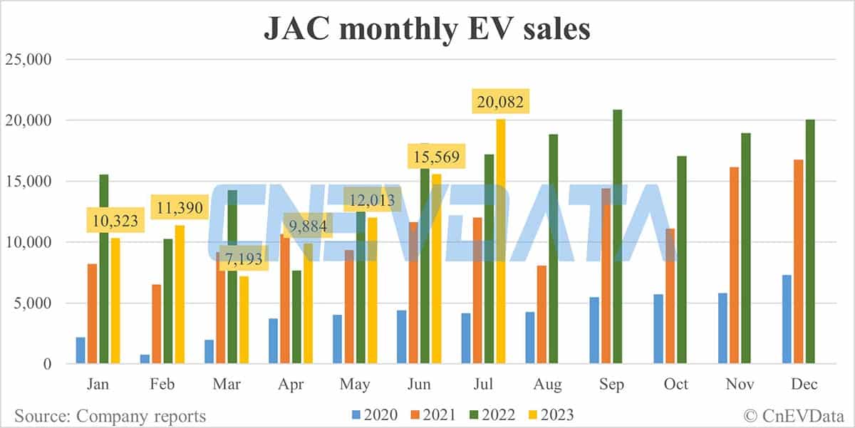 JAC's total vehicle sales in July were 50,572, including 11,006 units exported.