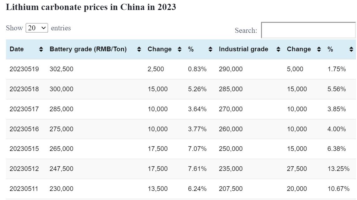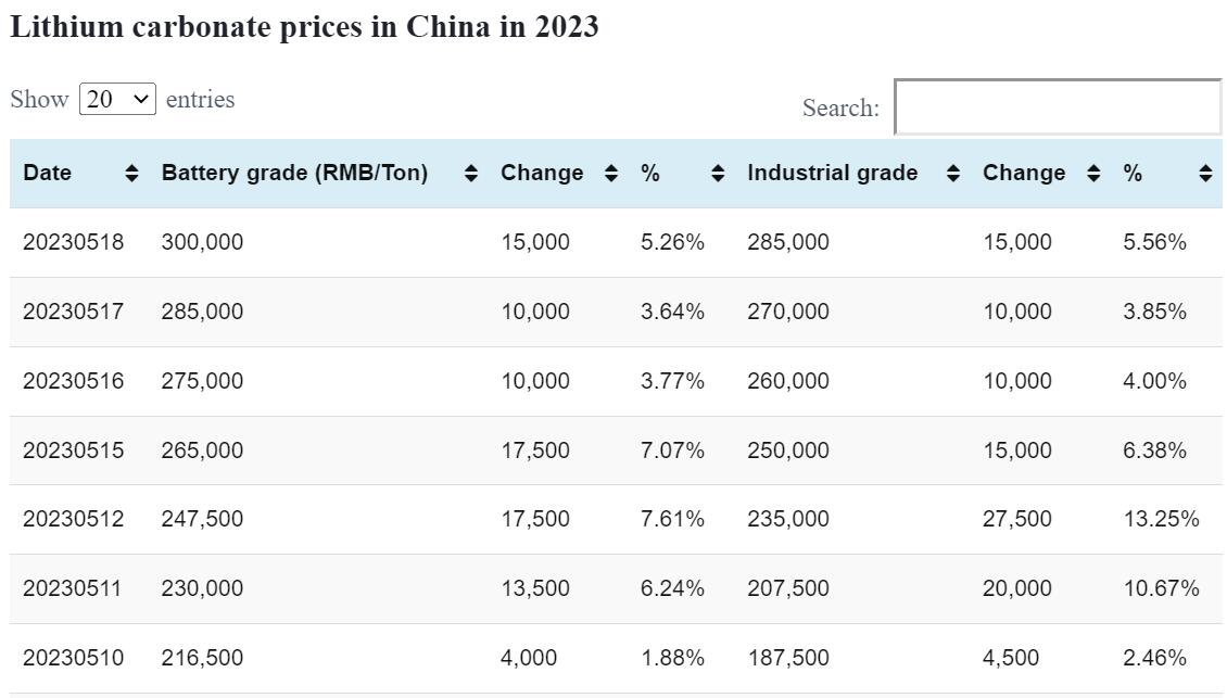 Battery-grade lithium carbonate price up by RMB 2,500 per ton