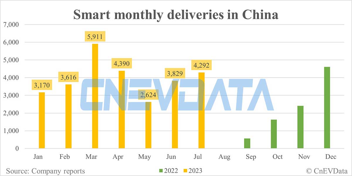 Smart delivered 27,832 vehicles in China in the January-July period.