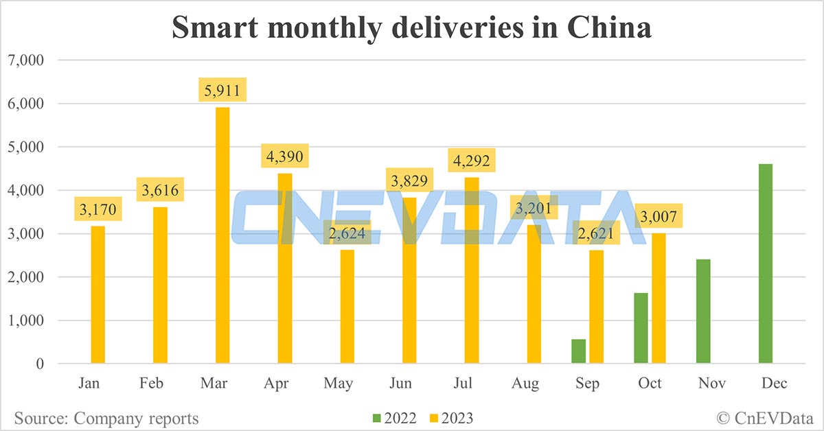 In the January-October period, Smart delivered 36,661 vehicles in China.