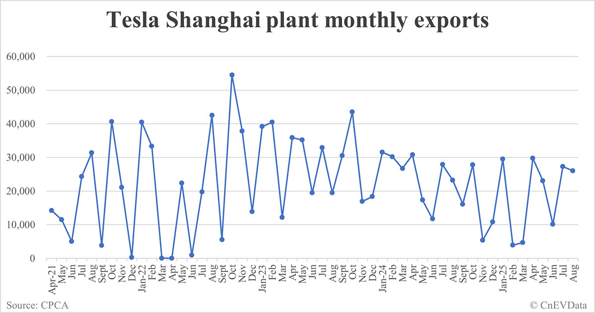 From January to August, Tesla's Shanghai factory exported 154,373 vehicles, a 22.60 percent decrease year-on-year.