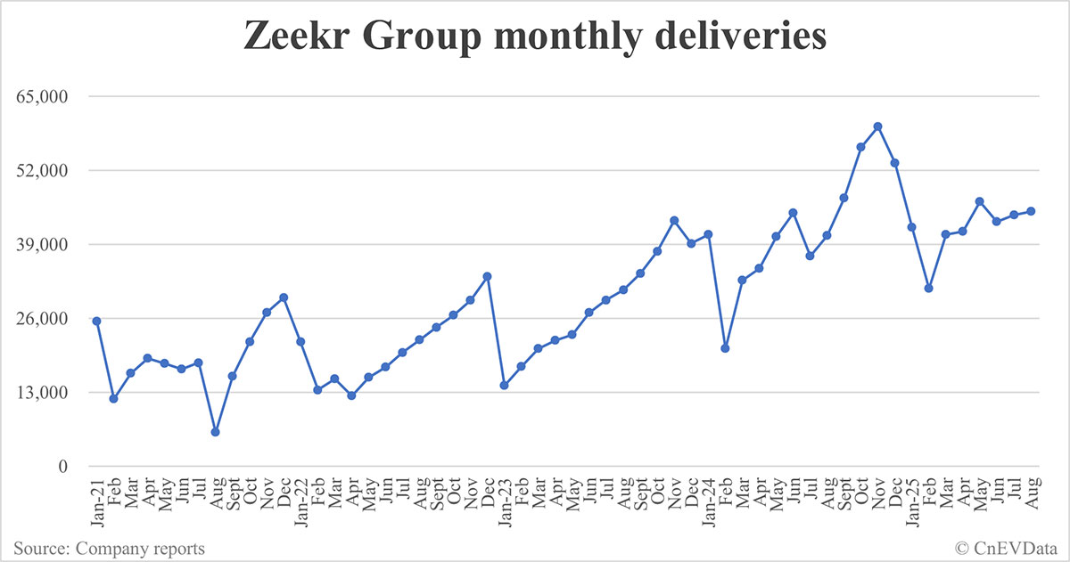 From January to August, Zeekr Group delivered 333,913 vehicles, representing a year-on-year increase of 14.61 percent.
