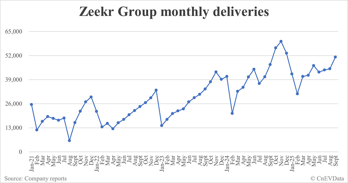 Zeekr Group delivered 140,195 cars in the third quarter, a year-on-year increase of 12.51 percent.
