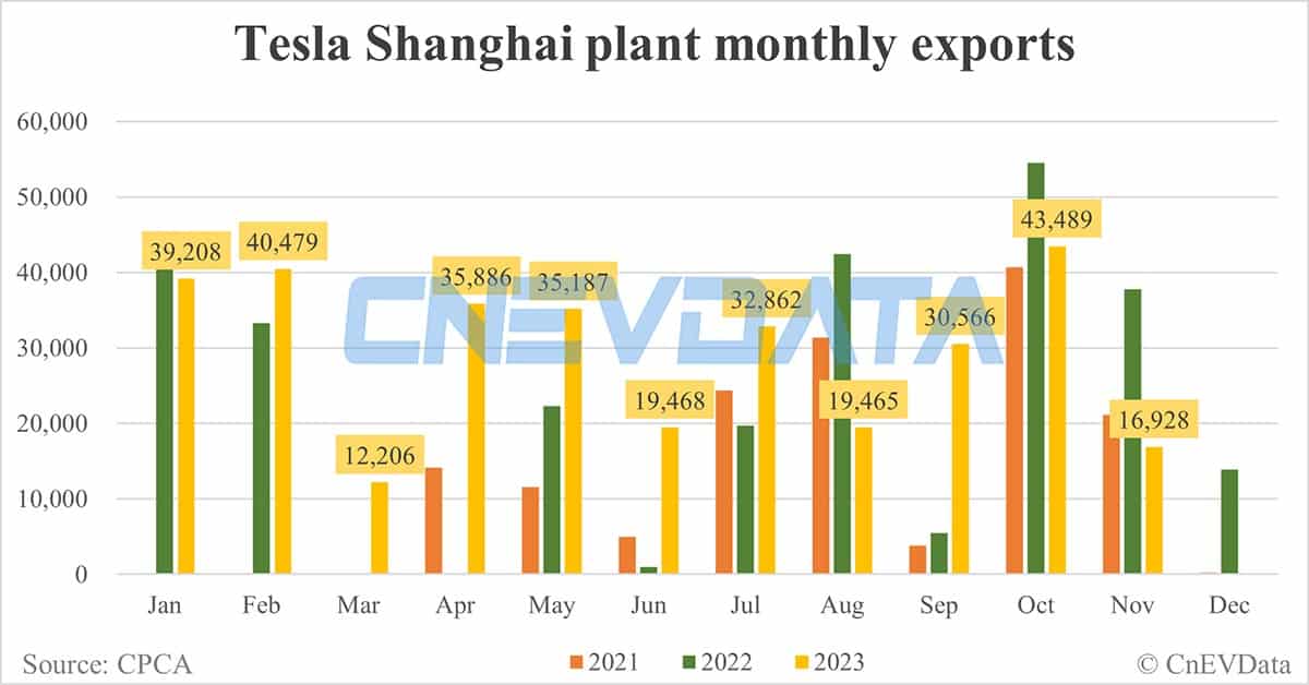 In the January-November period, Tesla delivered 527,859 vehicles in China, up 32.68 percent year-on-year.