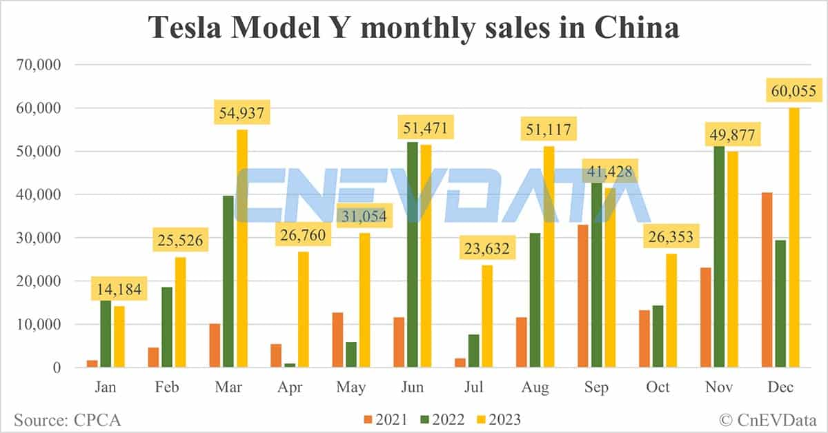 Tesla Dec sales in China: Model 3 at 15,750, Model Y at 60,055