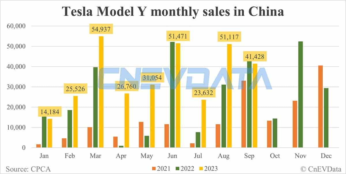 Model Y sales in China in September were 11.28 percent lower than in the same month last year and 18.95 percent lower than in August.