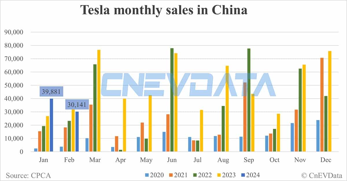 Tesla sales in China in Feb: 30,141