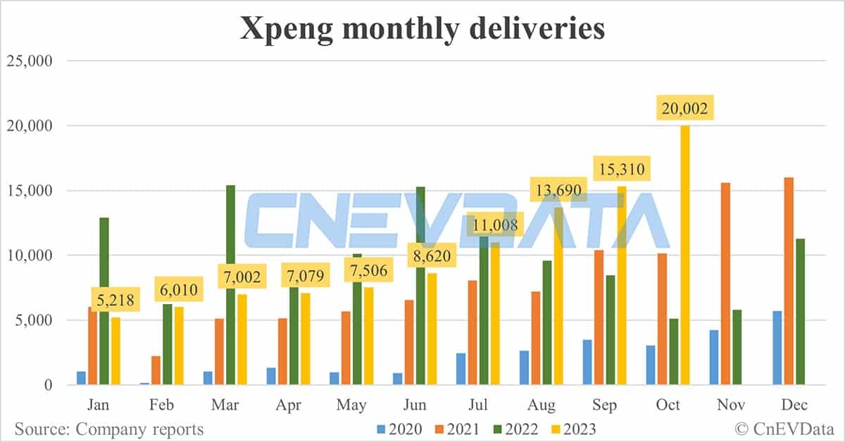 Xpeng delivered 101,445 vehicles in in the January-October period, down 2.13 percent year-on-year.