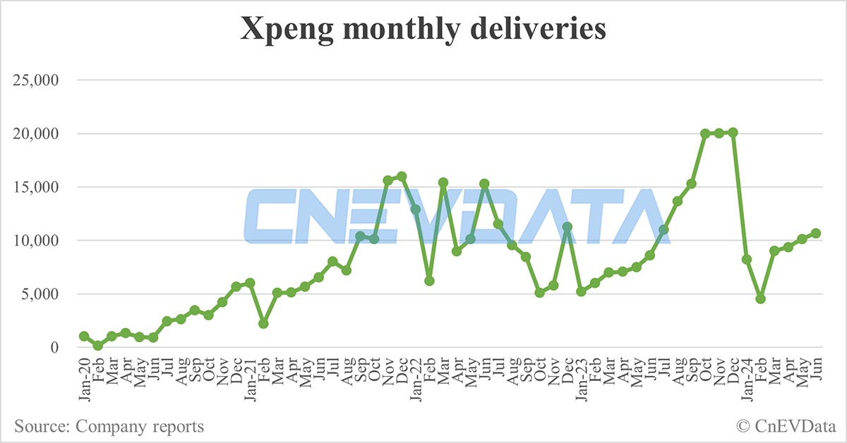 In the January-July period, Xpeng delivered 52,443 vehicles, down 34.86 percent from 80,507 vehicles in the same period last year.